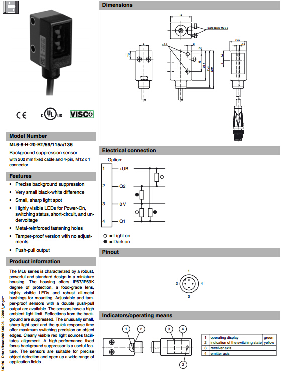 ML6-8-H-20-RT/59/115a/136,漫反射型傳感器