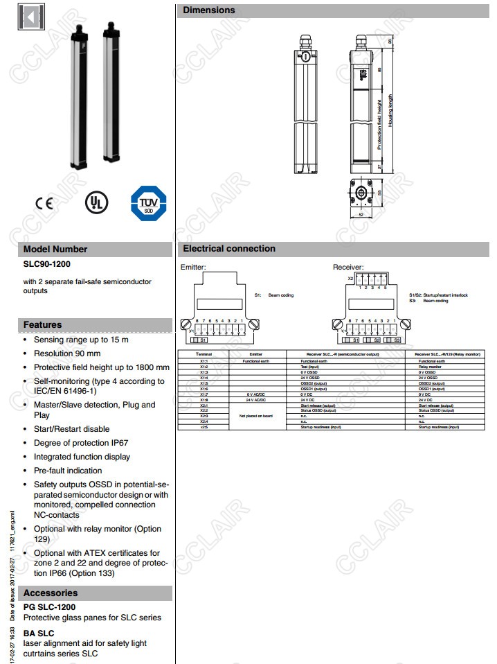 SLC60-600-S,SLC60-600/31,SLC60-900,SLC60-900/31,SLC90-1200,安全光柵
