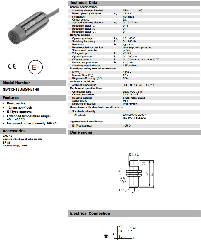 NBN12-18GM50-E1-M電感式接近開關(guān)