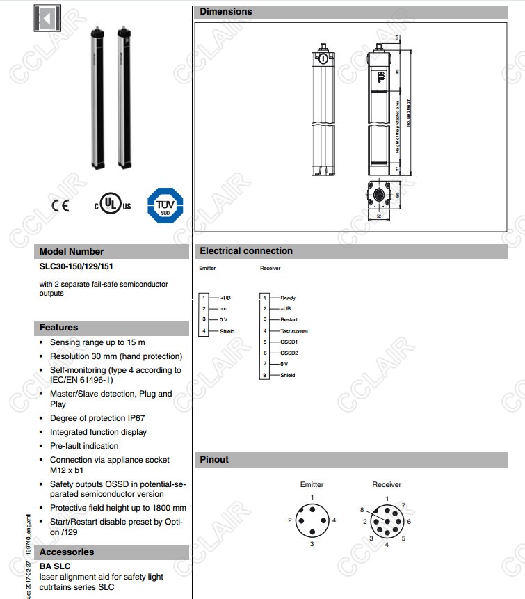 SLC30-1200/151,SLC30-1200/151,SLC30-1350/129/151,SLC30-1350/151,SLC30-150/129/151,安全光柵