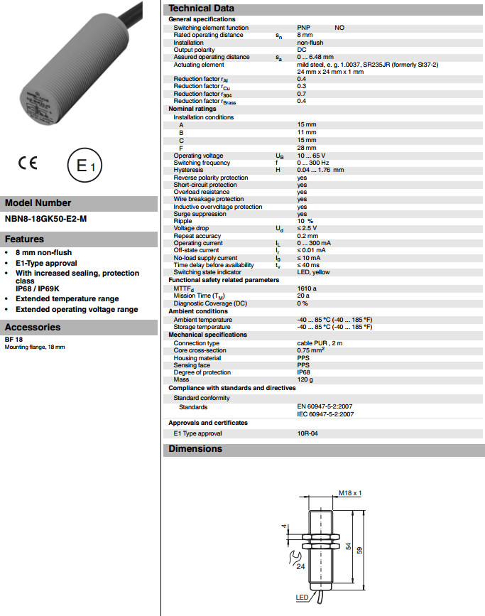 NBN8-18GK50-E2-M電感式接近開關(guān)
