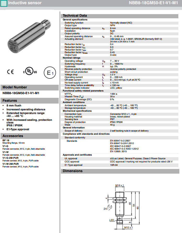 NBB8-18GM50-E1-V1-M,NBB8-18GM50-E1-V1-M1