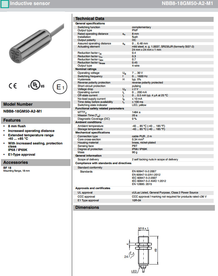 NBB8-18GM50-A2-M1,NBB8-18GM50-A0-M1