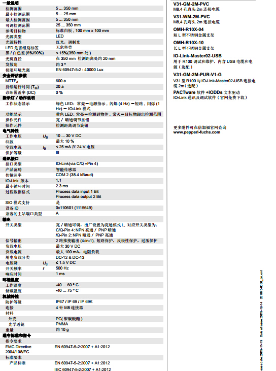 OBT350-R101-2EP-IO-V31,漫反射型傳感器