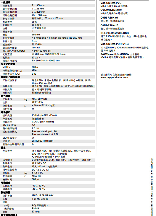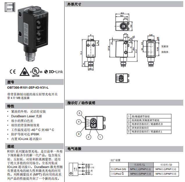 OBT300-R101-2EP-IO-V31-L,漫反射型傳感器