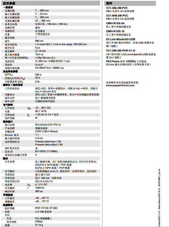 OBT300-R100-2EP-IO-V31-1T-L,漫反射型傳感器