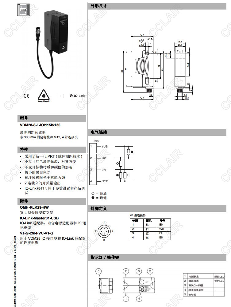 VDM28-15-L-IO/110/115b/122,VDM28-8-L-IO/115b/136,VDM28-8-L-IO/33/110/115b/122,距離傳感器