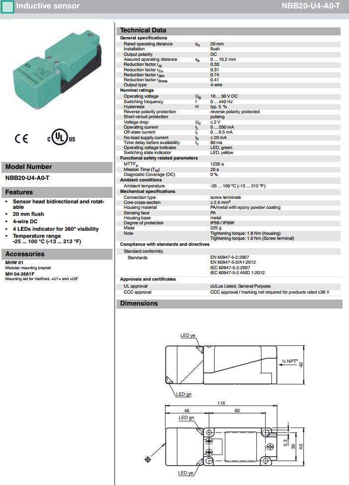 NBB20-U4-A0,NBB20-U4-A0-M,NBB20-U4-A0-T