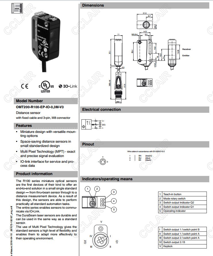 OMT200-R100-EP-IO-0,3M-V3,距離傳感器