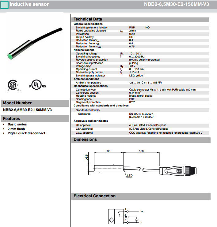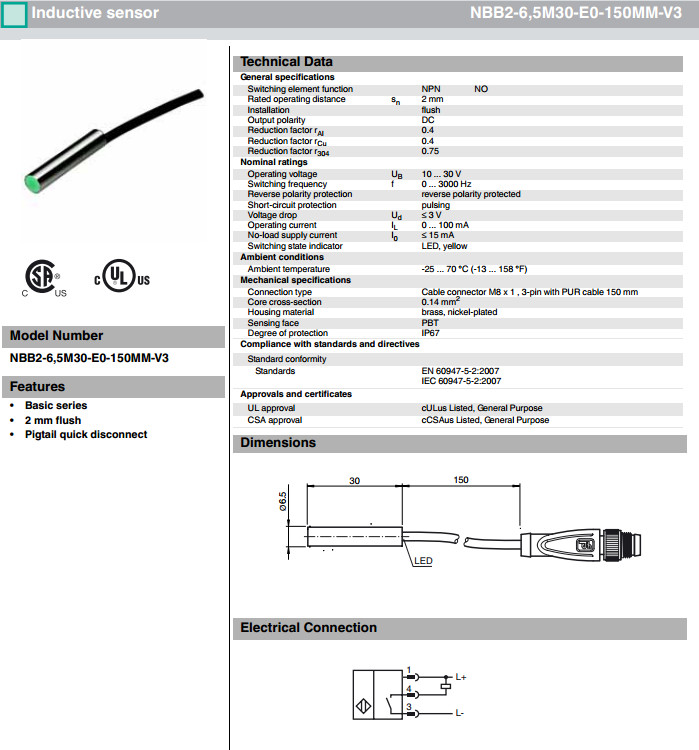 NBB2-6,5M30-E0-150MM-V3,NBB2-6,5M30-E2-150MM-V3