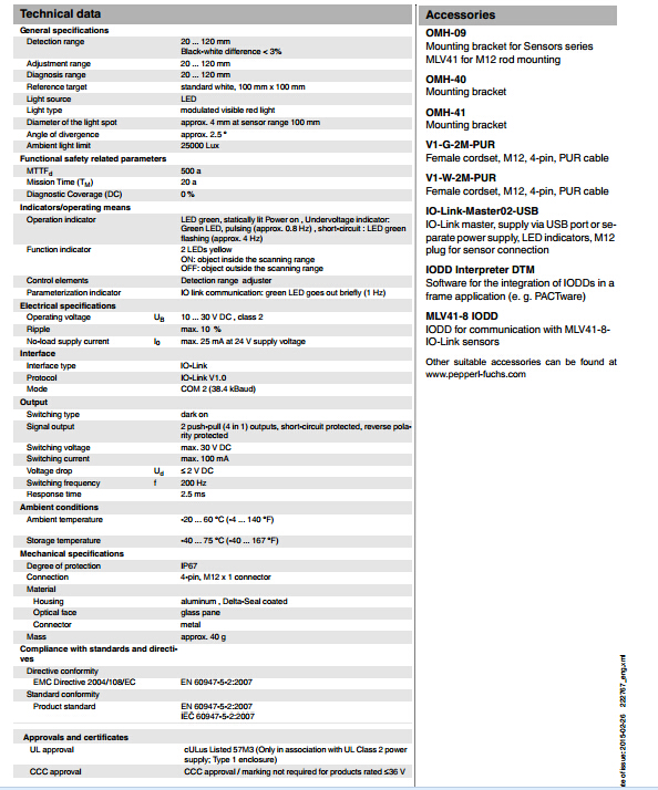 MLV41-8-H-120-RT-IO/65b/92/136,漫反射型傳感器