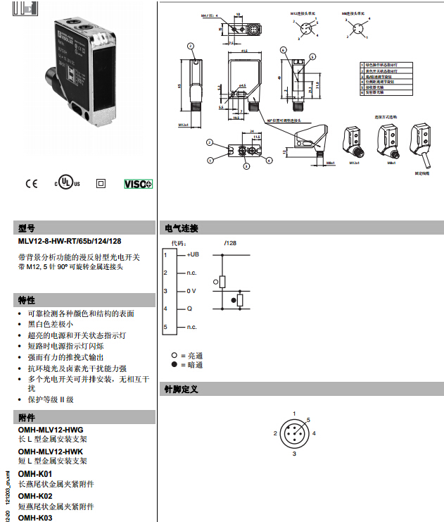 MLV12-8-HW-RT/65b/124/128,漫反射型傳感器