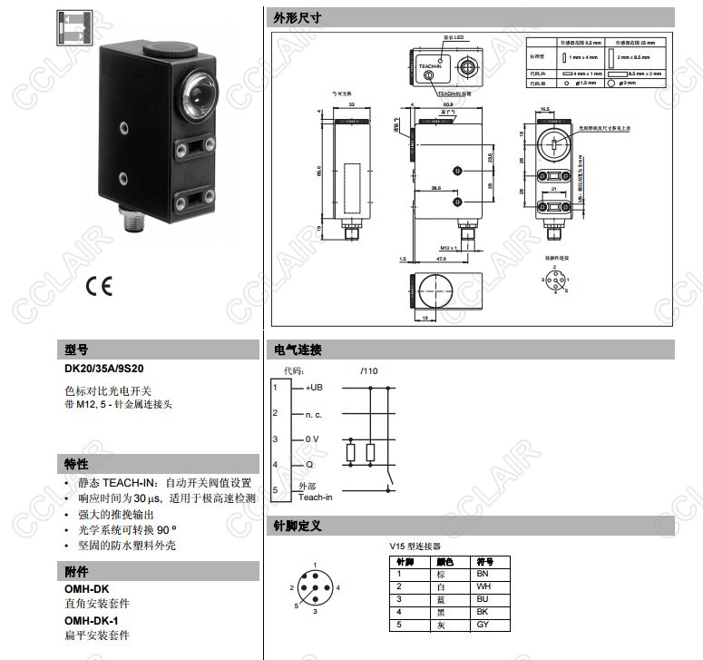 DK20-9,5/79B/110/124,DK20-9,5/A/79B/110/124,DK20/35A/9S20,色標對比度傳感器