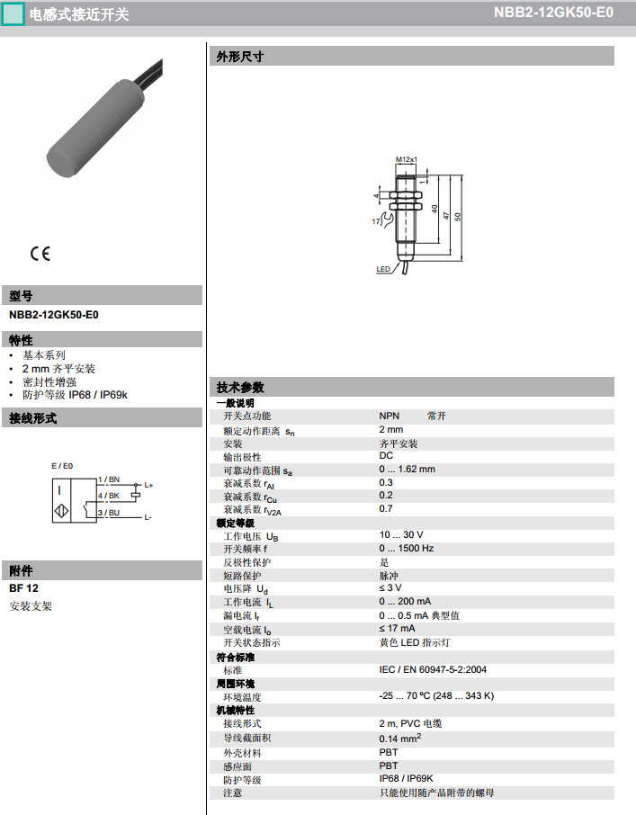 NBB2-12GK50-E0,NBB2-12GK50-E2-10M感應(yīng)式傳感器