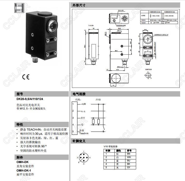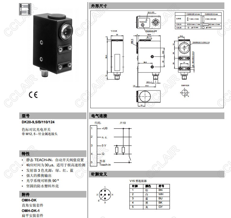DK20-9,5/110/124,DK20-9,5/A/110/124,DK20-9,5/B/110/124,色標(biāo)對(duì)比度傳感器