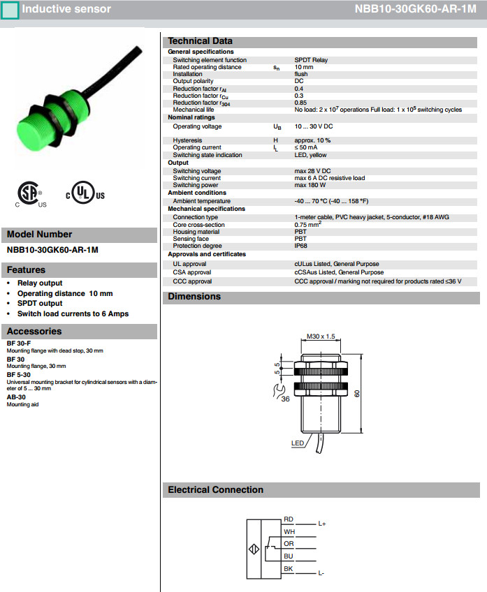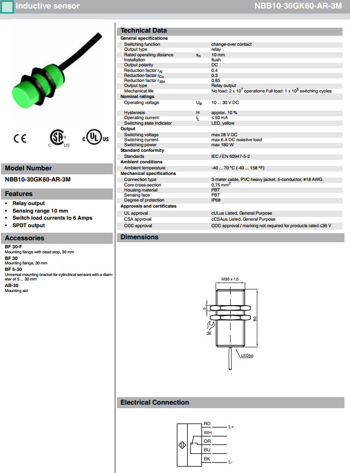 NBB10-30GK60-AR-1M,NBB10-30GK60-AR-3M