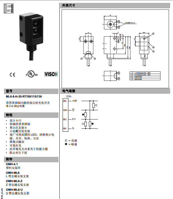 ML6-8-H-20-RT/59/115/136,漫反射型傳感器