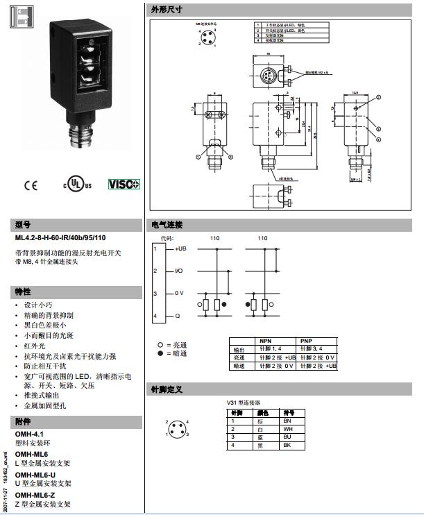 ML4.2-8-H-60-IR/40b/95/110,漫反射型傳感器
