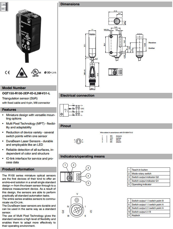 OQT150-R100-2EP-IO-0,3M-V31-L,開(kāi)關(guān)傳感器