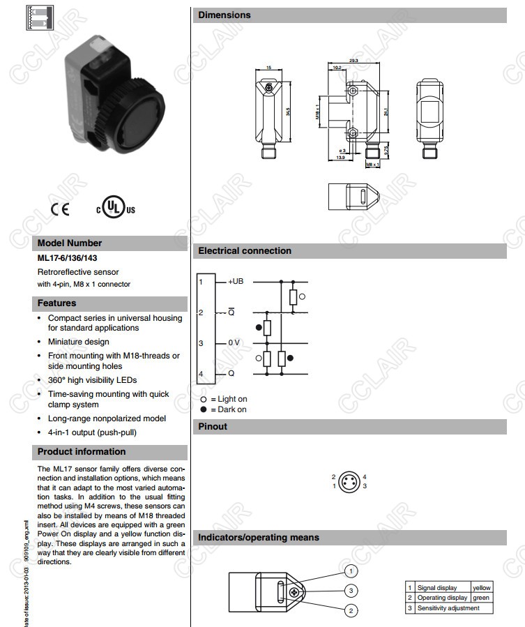 ML17-6/136/143,反射板型傳感器