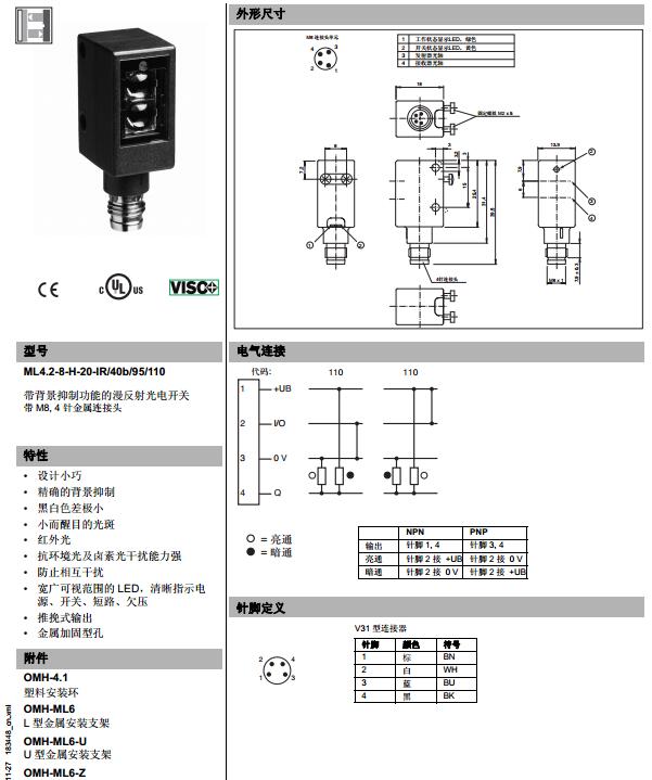 ML4.2-8-H-20-IR/40b/95/110,漫反射型傳感器