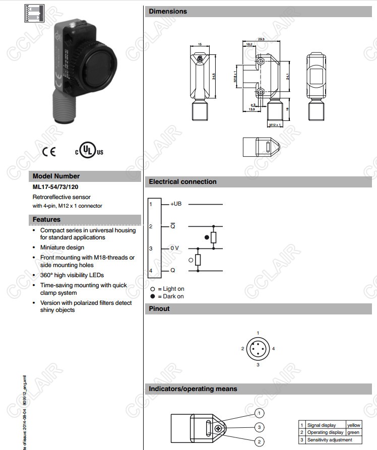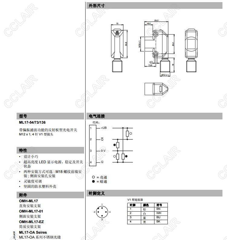 ML17-54/73/120,ML17-54/73/136,反射板型傳感器
