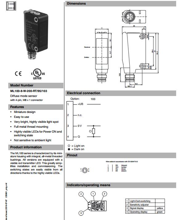 ML100-8-W-200-RT/95/103,漫反射型傳感器