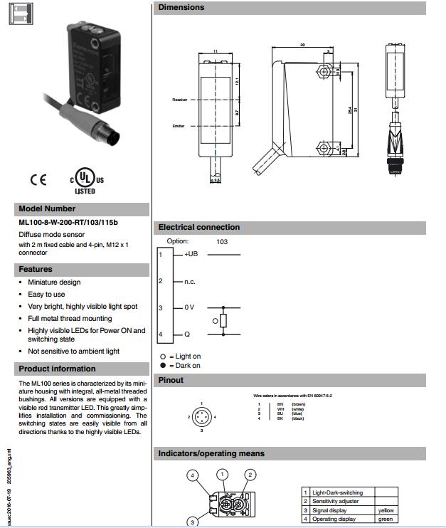 ML100-8-W-200-RT/103/115b,漫反射型傳感器