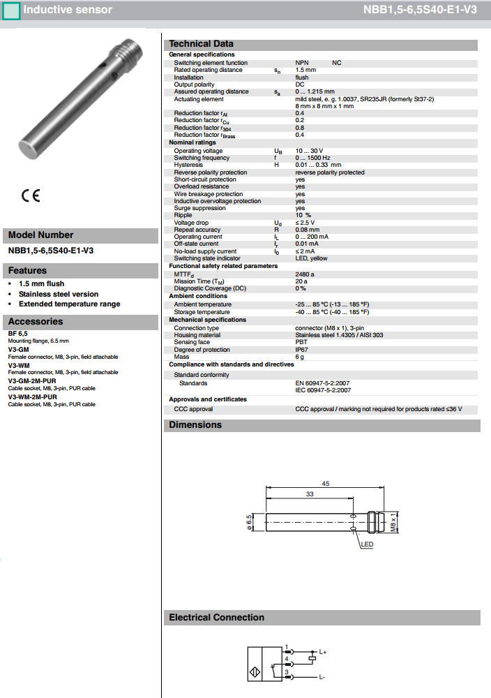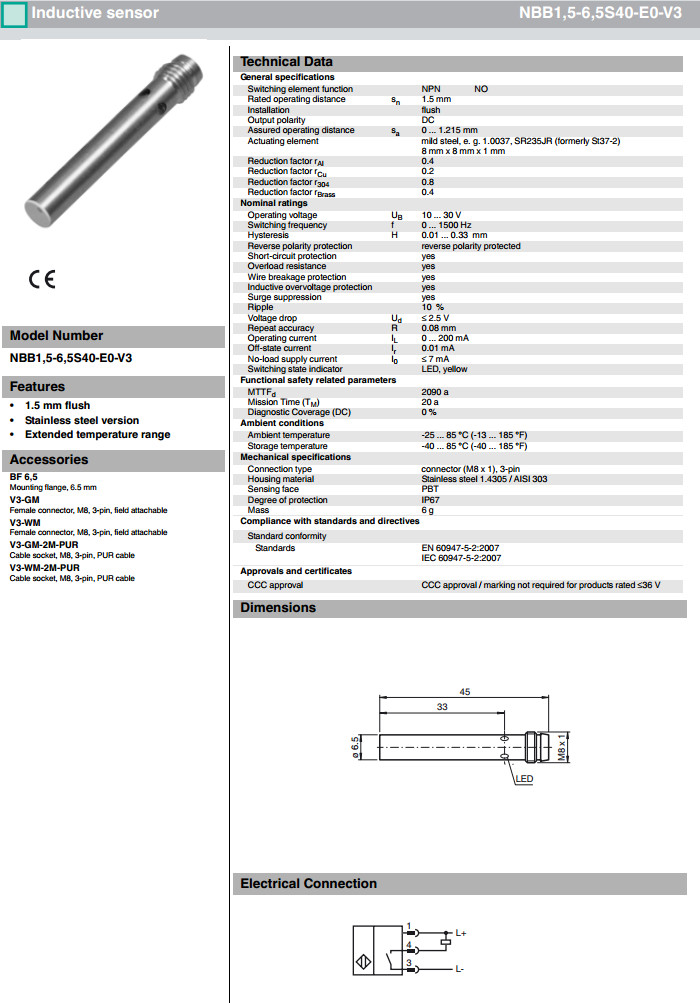 NBB1,5-6,5S40-E0-V3,NBB1,5-6,5S40-E1-V3,NBB1,5-6,5S40-E3-V3