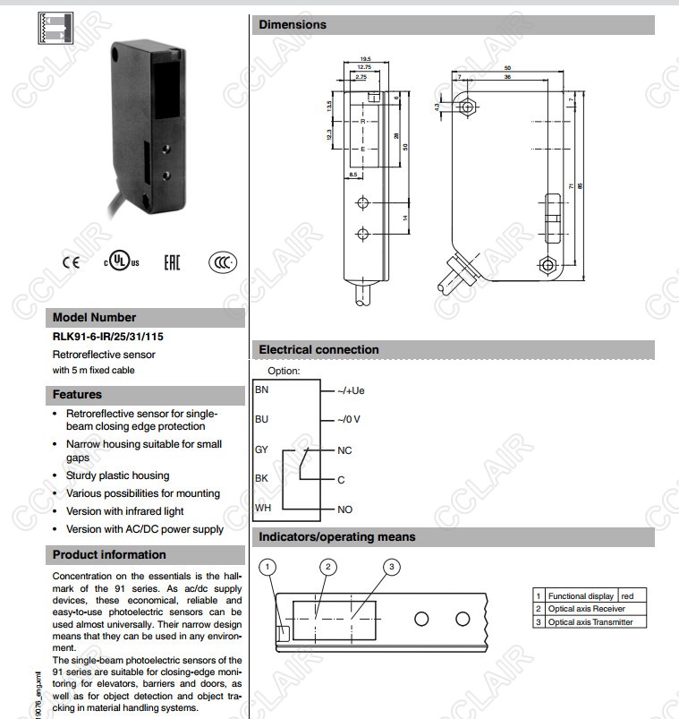 RLK91-6-IR/25/31/115,反射板型傳感器