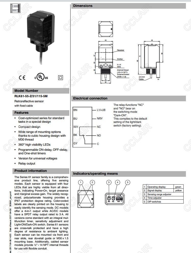 RLK61-55-Z/31/115,RLK61-55-Z/31/115-5M,反射板型傳感器