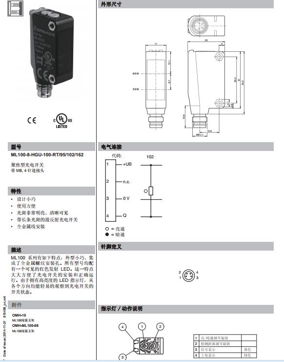 ML100-8-HGU-100-RT/95/102/162,漫反射型傳感器