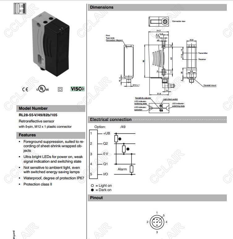 RL28-55-V/49/82b/105,反射板型傳感器
