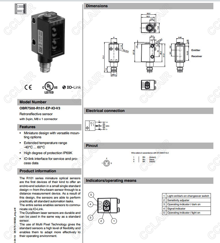OBR7500-R101-EP-IO-V3,反射板型傳感器
