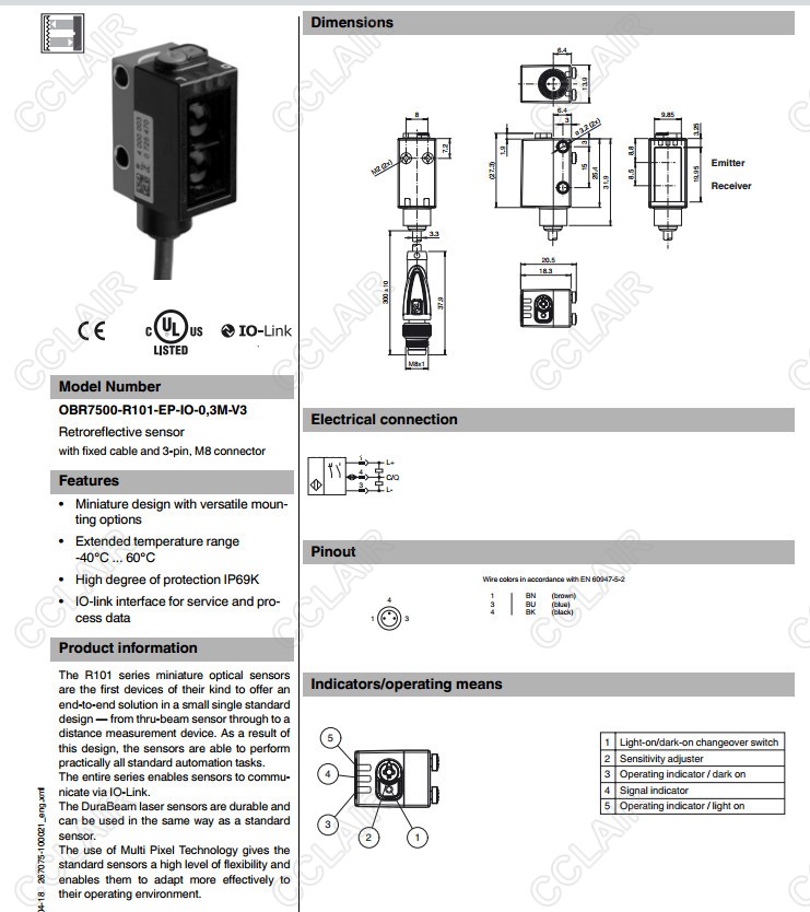 OBR7500-R101-E5-0,3M-V1,OBR7500-R101-EP-IO-0,3M-V3,反射板型光電開關(guān)