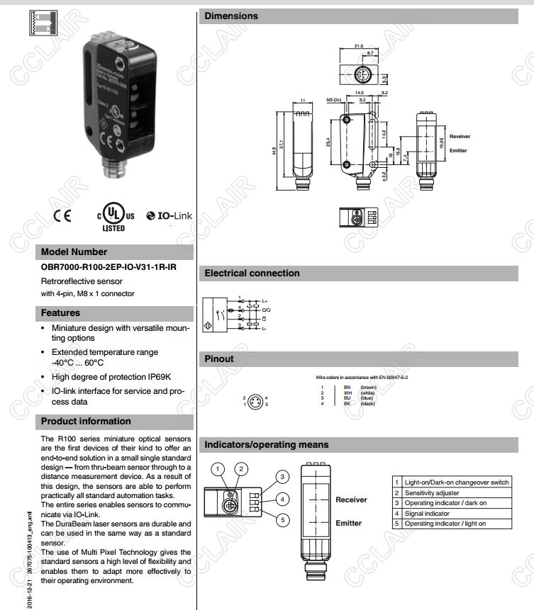 OBR7000-R100-2EP-IO-V31-1R-IR,反射板型光電開(kāi)關(guān)