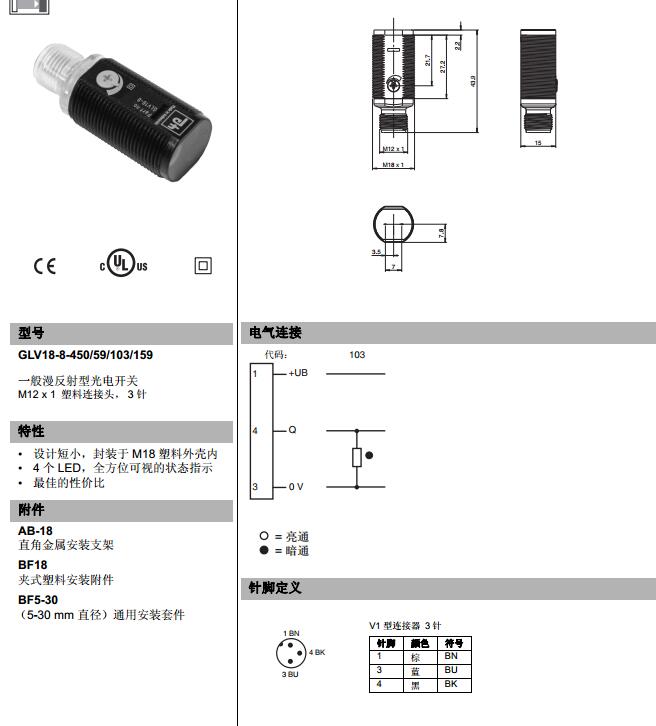 GLV18-8-450/59/103/159,漫反射型傳感器