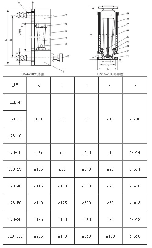 LZB-4,LZB-6,LZB-10,LZB-15,LZB-25,LZB-40,LZB-50,LZB-80,LZB-100,玻璃轉(zhuǎn)子流量計(jì)