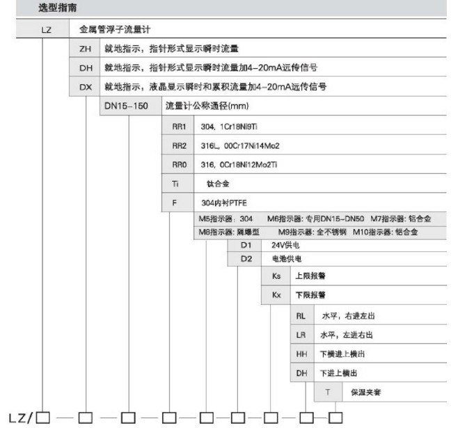 型號: LZ-DX-15,LZ-DX-25,LZ-DX-40,LZ-DX-50,LZ-DX-80,LZ-DX-100,LZ-DX-150,金屬管浮子流量計M8指示器
