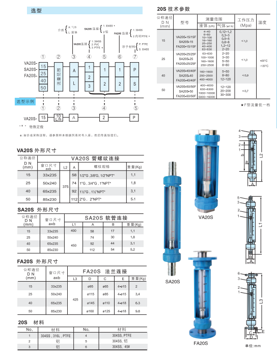 20S玻璃轉(zhuǎn)子流量計與同類產(chǎn)品比較具有測量精度高,互換性能好,連接方式多樣化,VA20S管螺紋連接,SA20S軟管連接,F(xiàn)A20S法蘭連接,精度等級互換2.5級,單標(biāo)1.5級