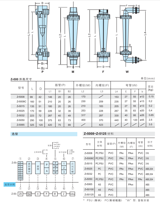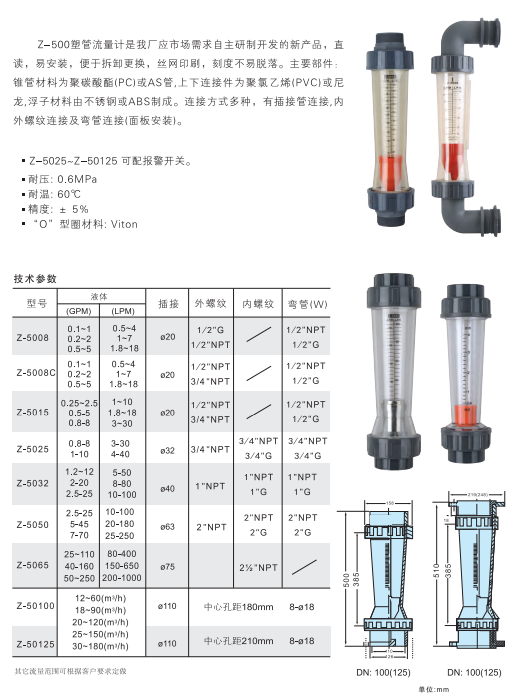 Z-5008,Z-5008C,Z-5015,Z-5025,Z-5032,Z-5050,Z-5065,Z-50100,Z-50125,塑管流量計