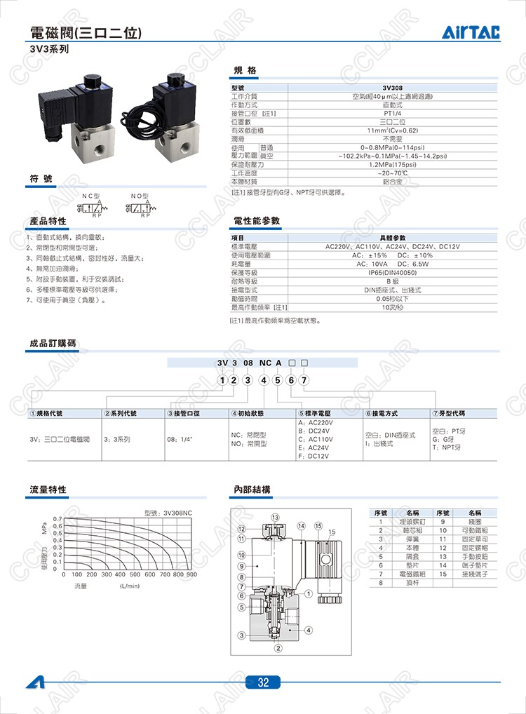 3V308NC,3V308NO,AIRTAC電磁閥