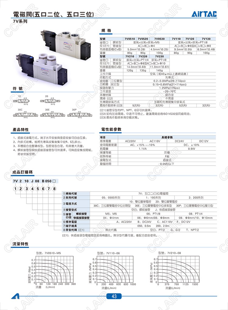 7V0510-M5,7V0510-06,7V0510-08,7V0520-M5,7V0520-06,7V0520-08,AIRTAC電磁閥