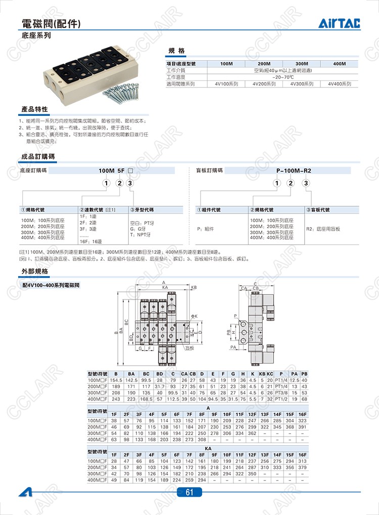 AIRTAC亞德客 電磁閥底座4V100M-1F,4V100M-2F,4V100M-3F,4V100M-4F,4V100M-5F,4V100M-6F 4V100M-7F,4V100M-8F,4V100M-9F,4V100M-10F,4V100M-11F,4V100M-12F,4V100M-13F,4V100M-14F,4V100M-15F 4V100M-16F,4V200M-1F,4V200M-2F,4V200M-3F,4V200M-4F,4V200M-5F,4V200M-6F
