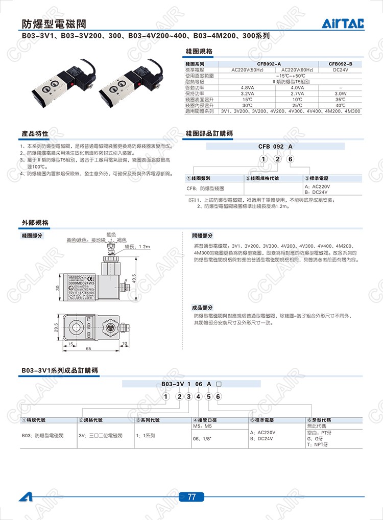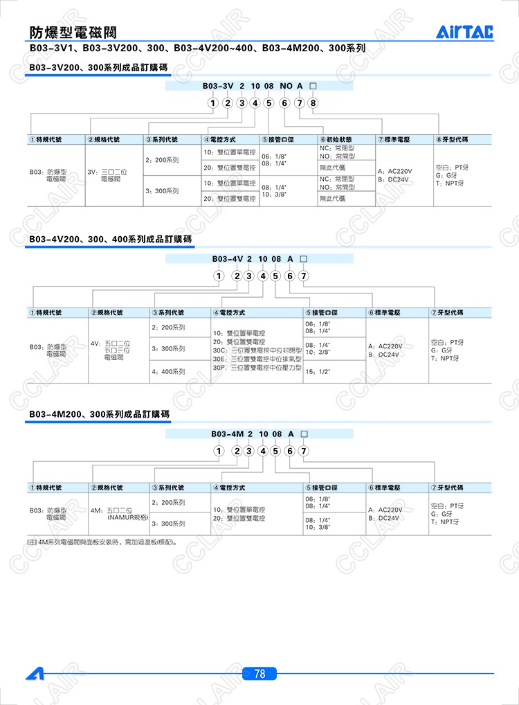 B03-3V1M5,B03-3V106,B03-3V21006NC,B03-3V21006NO,B03-4V21006,B03-4V22006,AIRTAC電磁閥