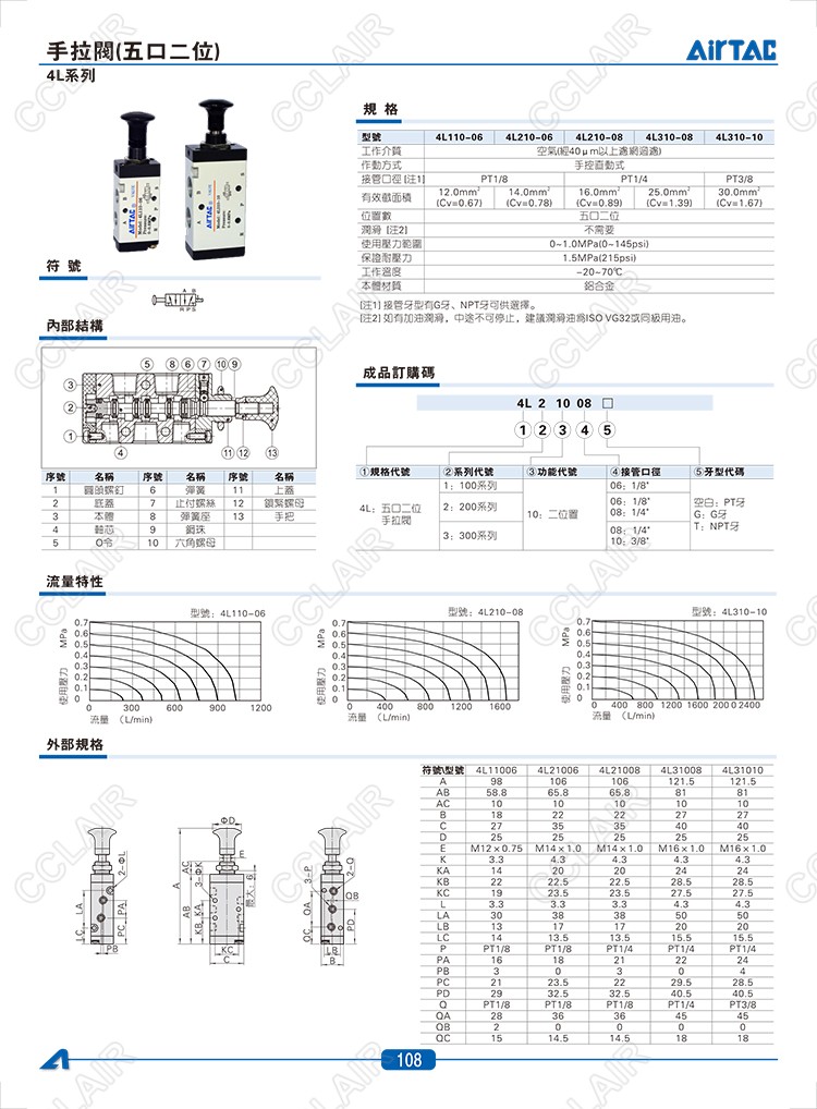 4L110-06,4L210-06,4L210-08,4L310-08,4L310-10,AIRTAC手拉閥