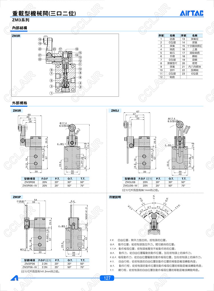 ZM3R-06,ZM3J-06,ZM3P-06,ZM3R-06-W,ZM3J-06-W,ZM3P-06-W,AIRTAC重載型機械閥