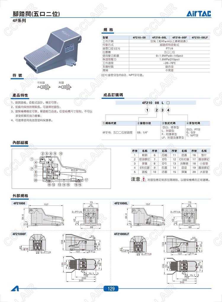 4F21008,4F21008L,4F21008F,4F21008LF,AIRTAC腳踏閥