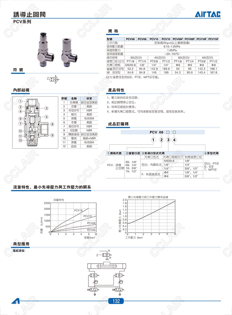 PCV06,PCV08,PCV10,PCV15,PCV06F,PCV08F,PCV10F,PCV15F,AIRTAC止回閥