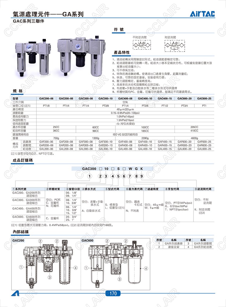GAC200-06,GAC200-08,GAC300-08,GAC300-10,GAC400-08,GAC400-10,AIRTAC三聯(lián)件